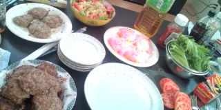 まずみんなでスーパーに買い出し行って、クリスピークリームドーナツ食べながらハンバーグ作り!
