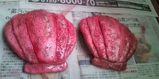 ピンクベースに銅とメタルレッドをエアブラシで混ぜたり重ねて吹き付けてみたよ。