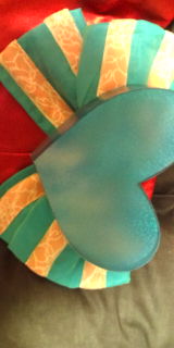 ハートにドリルで穴4か所空けて、ワンピにリボンと一緒に縫い付けたよ\(^o^)/