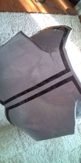 合皮+ラリッサというなんとも針の進まない作業なので上に薄いビニール袋を敷いて一緒に縫っていきます。