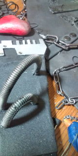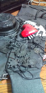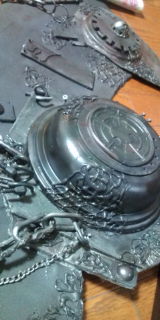 着れるようにマジックテープつけて、腰の大きいパーツつけて、バランス見ながら細かいパーツ付けてるところ。