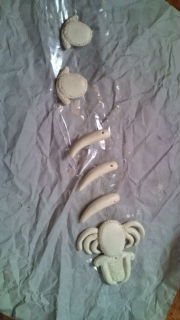 エポパテでティアラとビーズパーツ作成、硬化中。