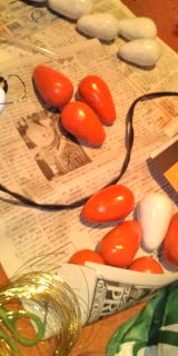 まず実の塗装、コロコロ転がるからそこらじゅうひっついて失敗したけどまあなんとか!