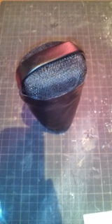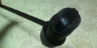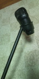 上半分切ってマイクにサイズ合わせて合皮貼って棒と合体!