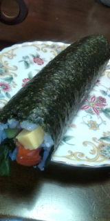 ばあちゃん手作りだよ\(^o^)/サーモン入っとる♪喋らずに一本食いだよね!?いただきます!